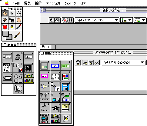 Macintosh版については,完全にPowerPC対応LabVIEWとなりました。そのため,LabVIEW2.2以前に作成したCIN(コード・インターフェース・ノード)を用いたアプリケーションは,PowerPCに対応するようにCINの変更が必要になります。