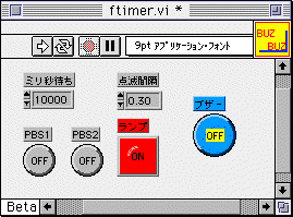歩行者信号機の点滅,種々の警告灯等に使用しますが,タイマVI作成の時に使用したTick Count.viの応用となります。